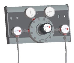 SpectroCem dubbelzijdig reduceerstation, op montagevriendelijk paneel voor wandmontage